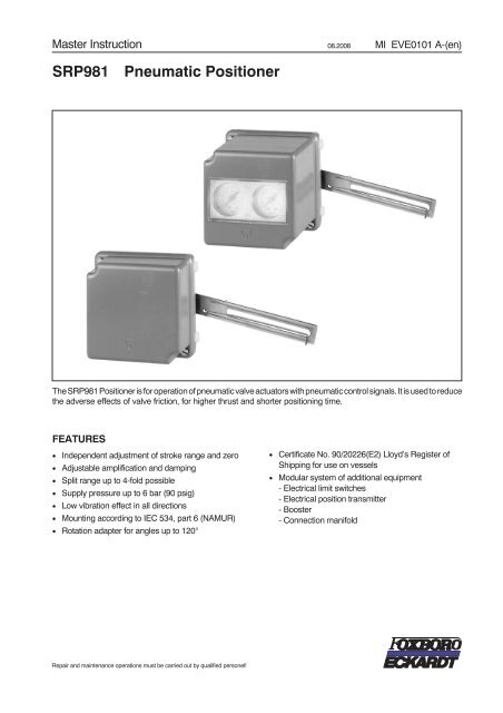 Srp981 Pneumatic Positioner Foxboro Eckardt
